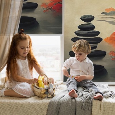 Important! Pattern placement on the window blind is size-dependent. The precise pattern for each roller blind size is showcased in the product gallery.